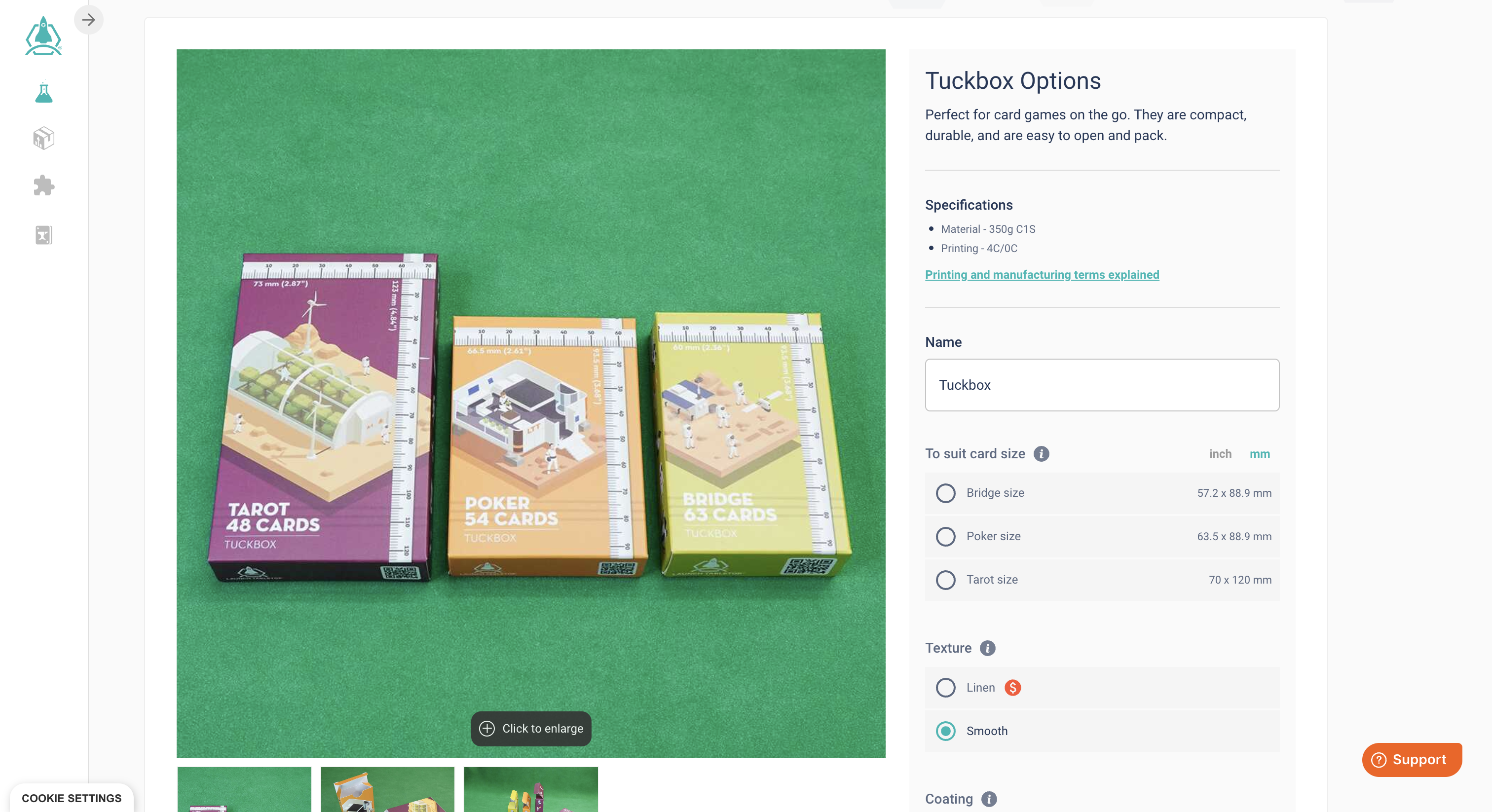 When you click on a component type, you will see the Customise screen. The below is the Customise screen for a tuckbox.