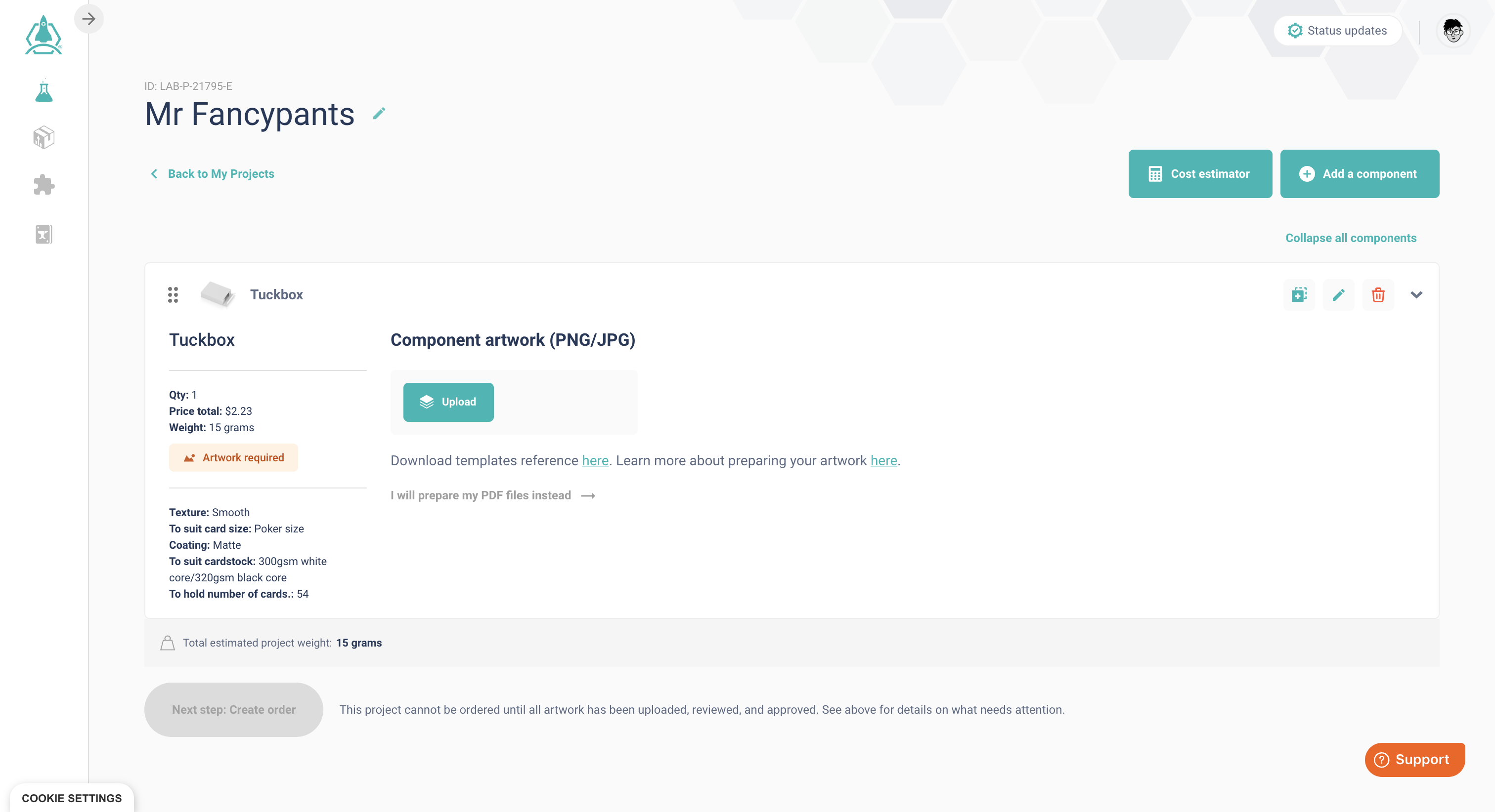 This article will step you through the process of adding components - like cards, boards, playmats, dice and more - to your project in Launch Lab. Watch the short video tutorial below, or read on.